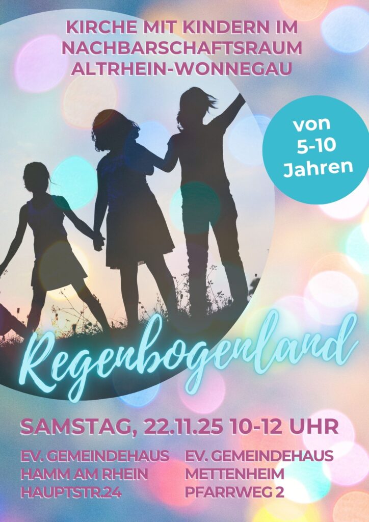 Am 22. November findet von 10-12 Uhr das Treffen der Regenbogenlandgruppe statt. Eingeladen sind alle Kids von 5-10 Jahren